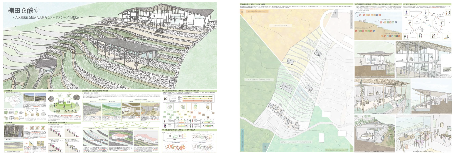 2024年度日本建築学会設計競技「コモンズの再構築 ― 建築、ランドスケープがもたらす自己変容」において、 M2 の古賀さん、福地さんの作品「棚田を醸す 六次産業化を踏まえた新たなフードスケープの提案」が四国支部入選作品となりました。
